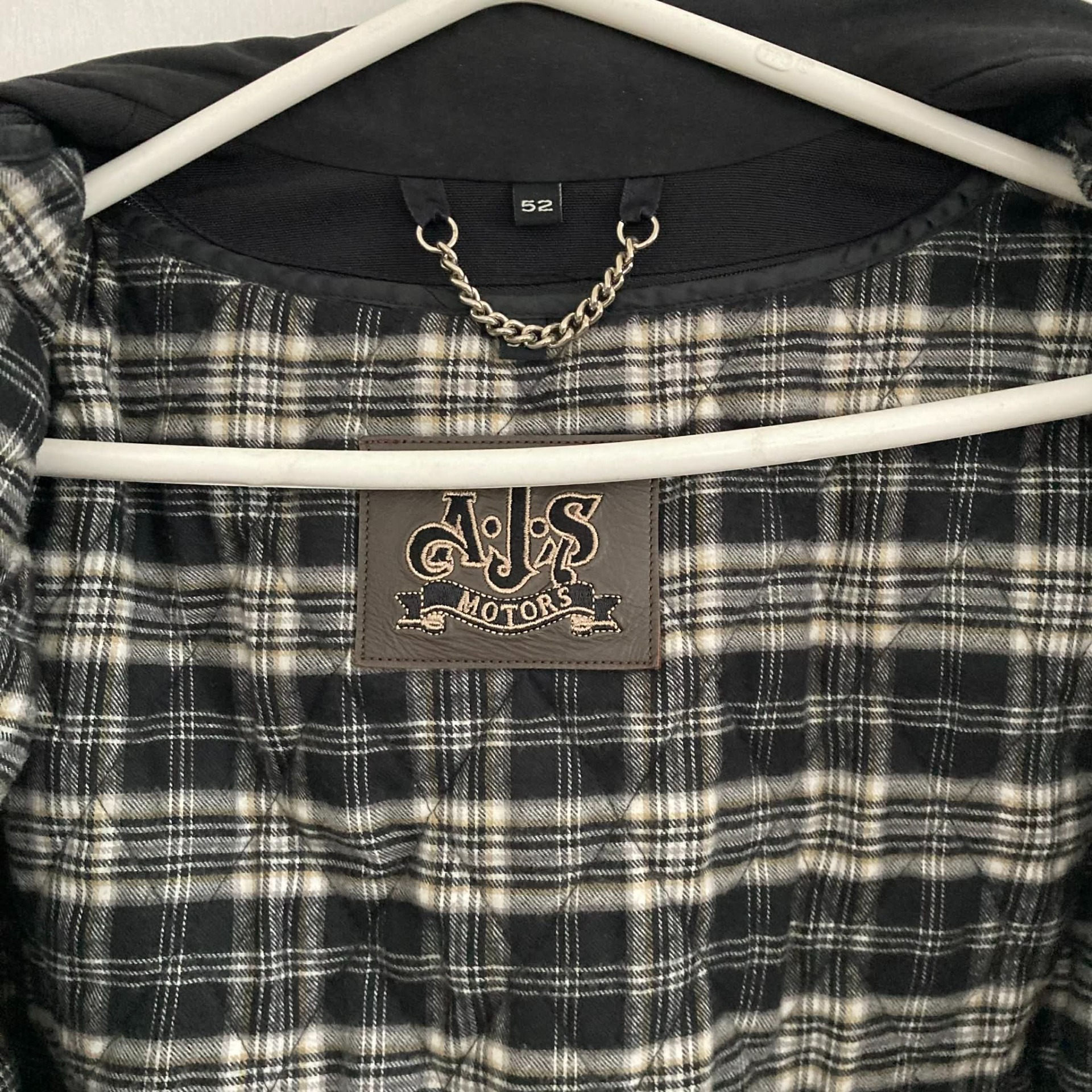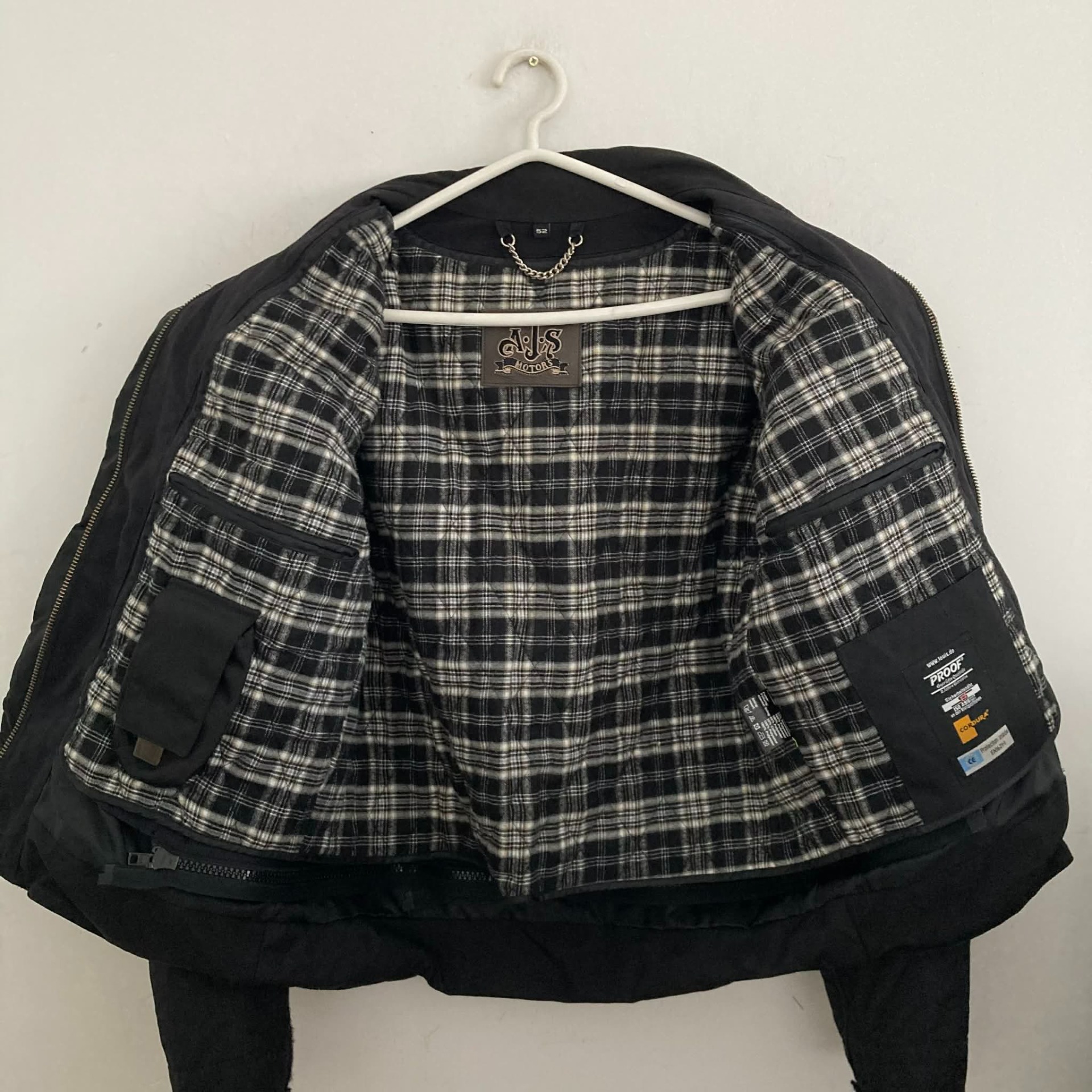 Megkímélt állapotú motoros dzseki 52-es méretben.