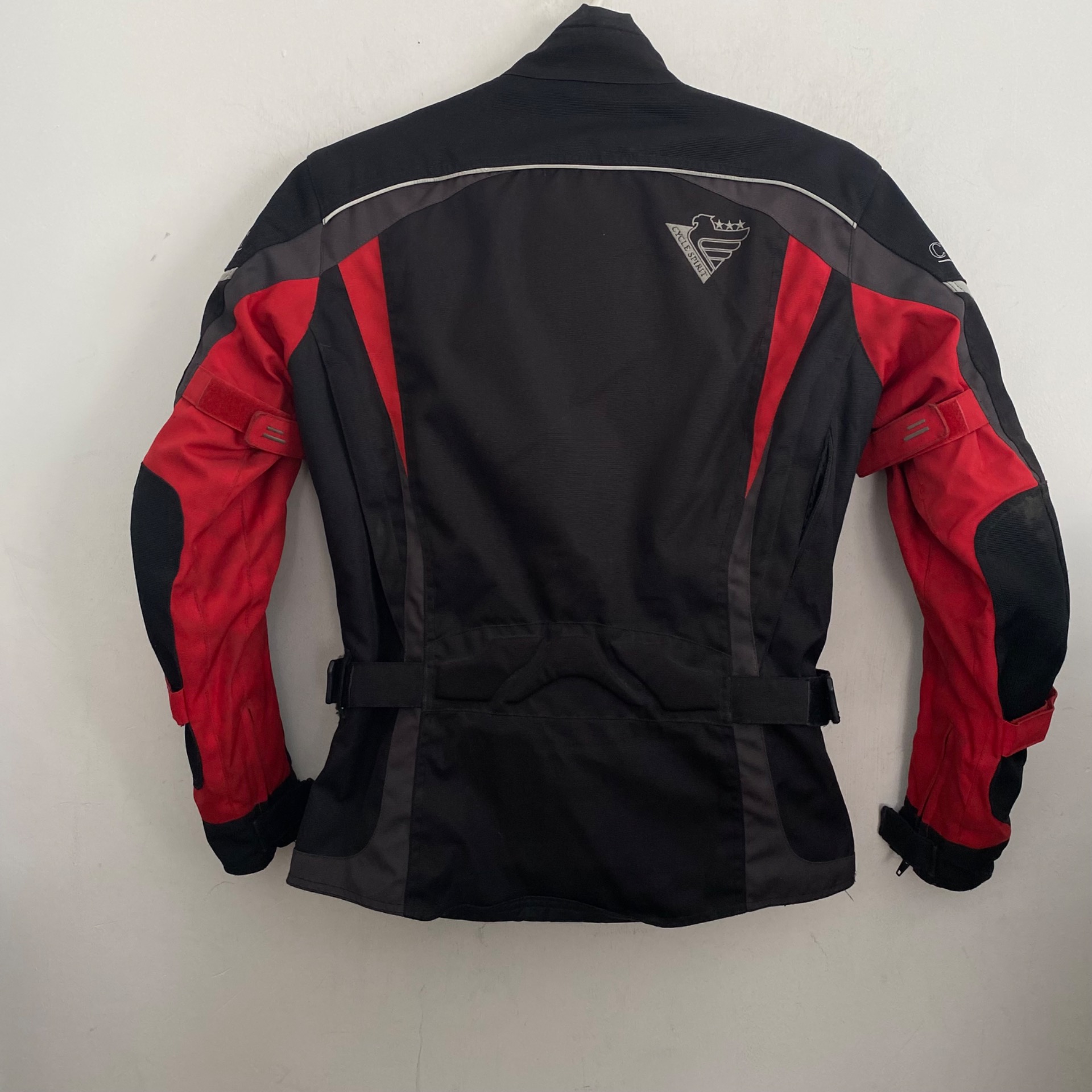 Hasznàlt, jó állapotú, könyök és váll protektoros (gerinchez is rakható), kivehető béléssel rendelkező női motoros dzseki S-es méretben.