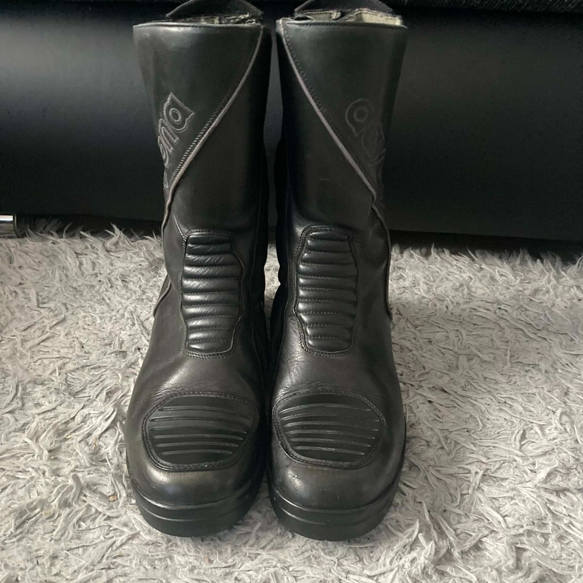 Megkímélt állapotú, vízálló, bőr motoros csizma 44-es méretben.