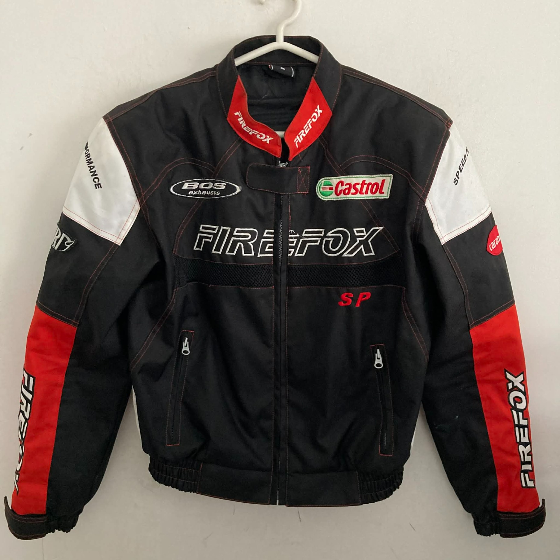 Megkímélt állapotú motoros dzseki S-es méretben.