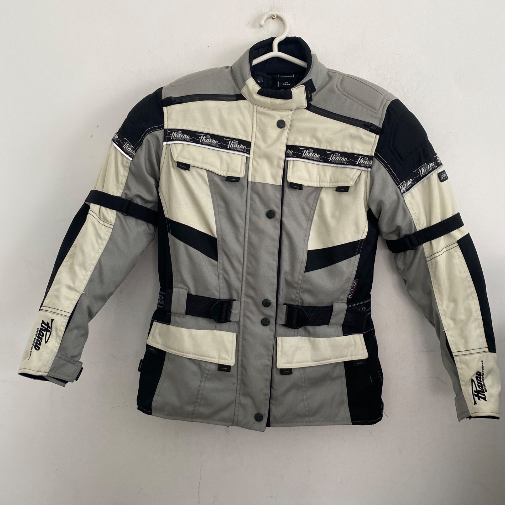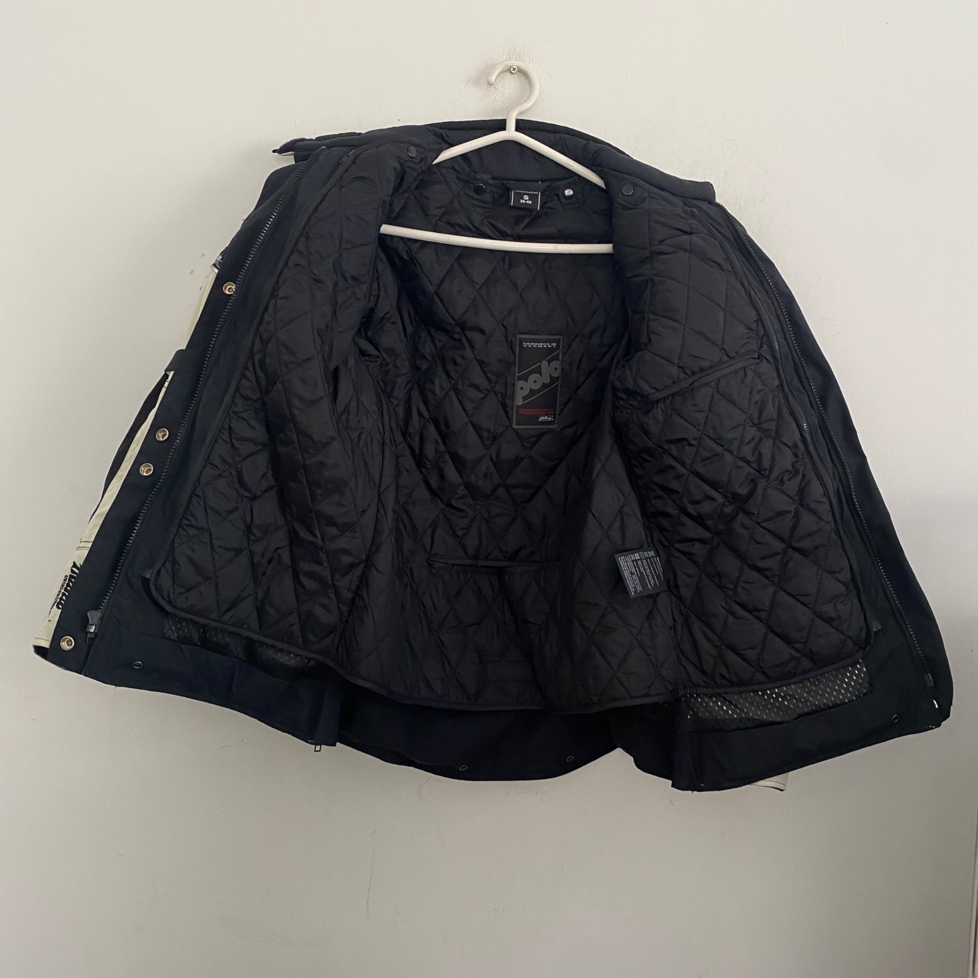 Megkímélt állapotú, könyök és váll protektoros (gerinchez is rakható), kivehető béléssel, szellőzokkel rendelkező női motoros dzseki S-es méretben.