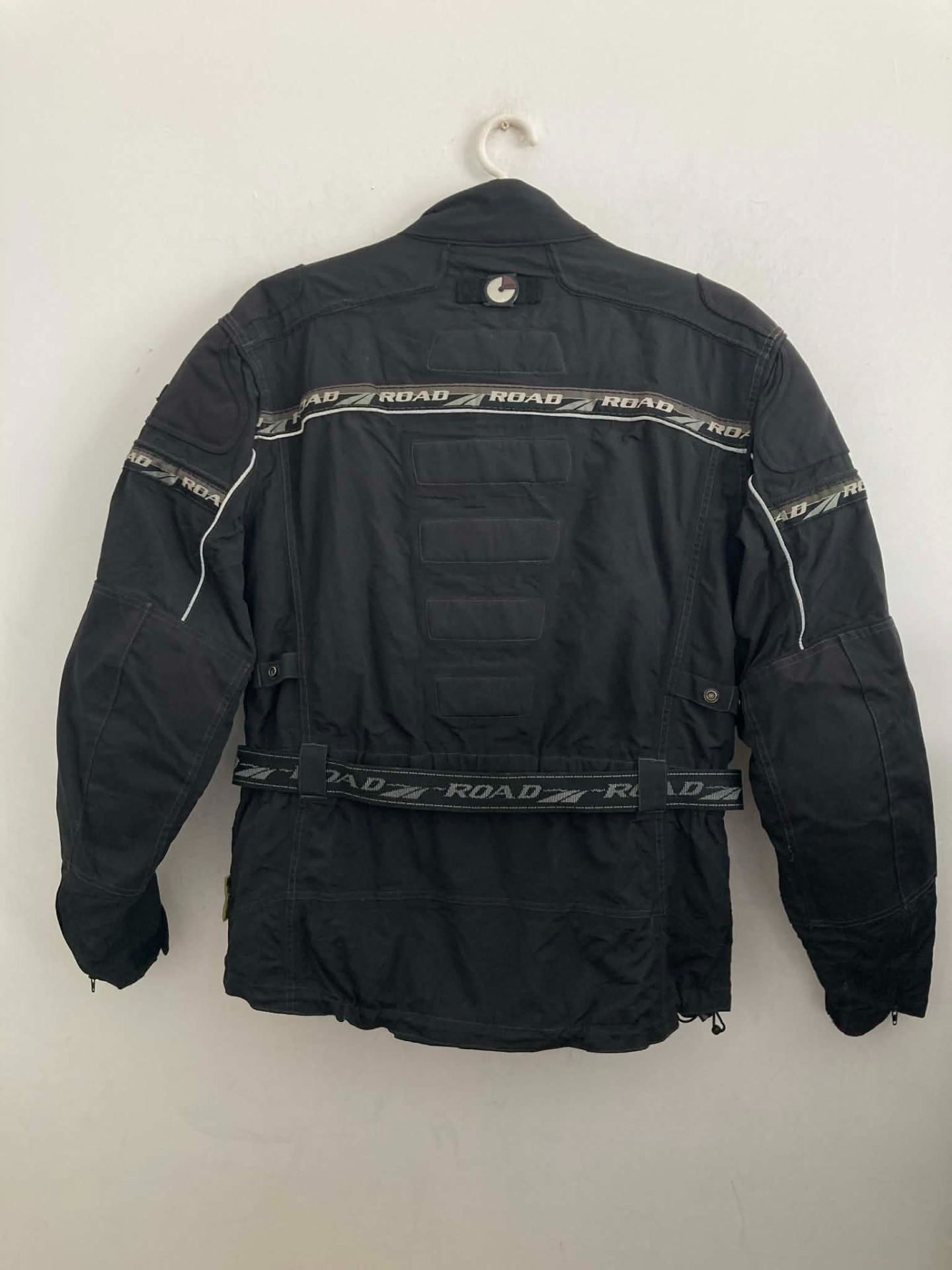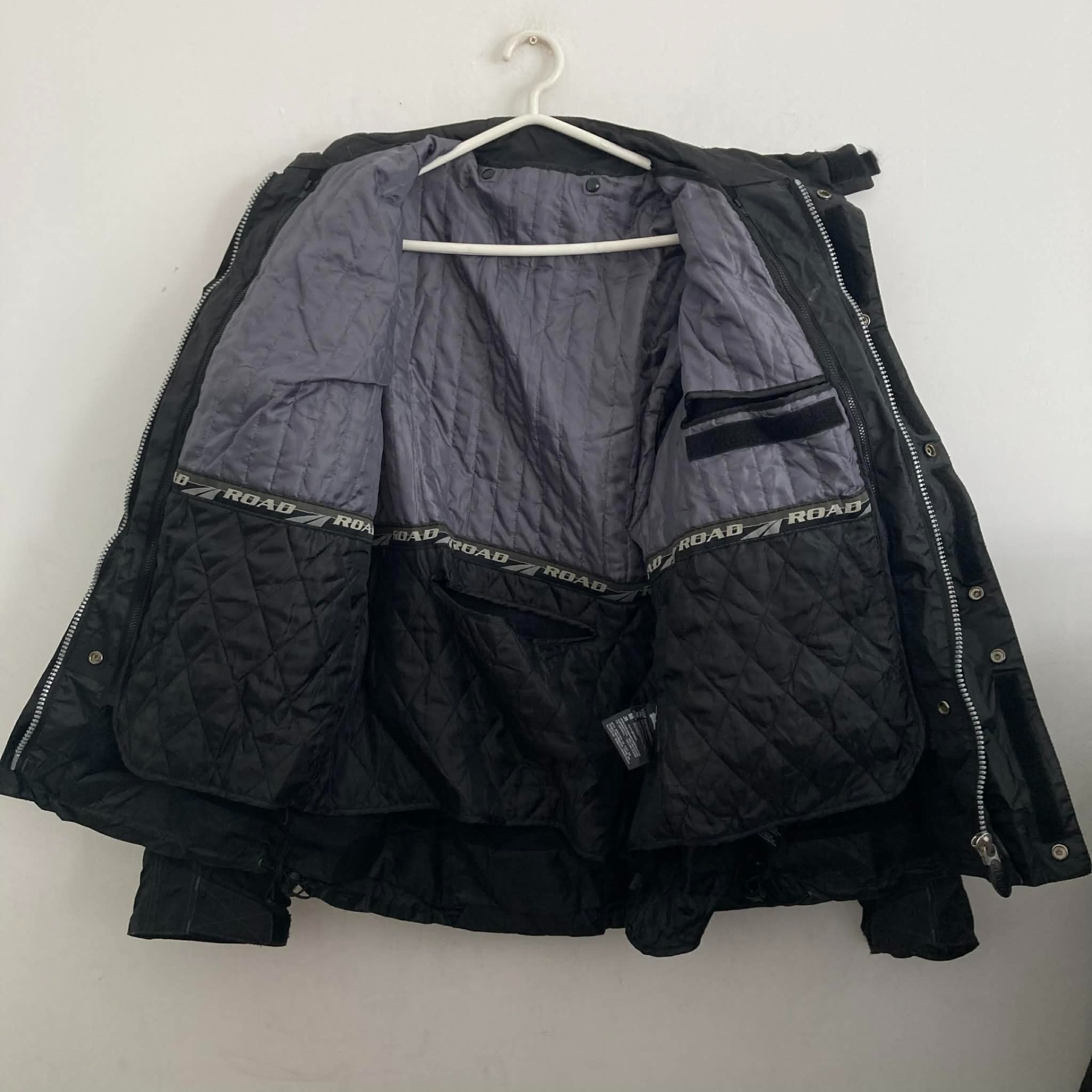 Használt, jó állapotú, könyök és váll protektoros (gerinchez is rakható), kivehető thermo béléssel rendelkező motoros kabát. Beleírt mérete M-es. Váll 53 cm, mell (hónalj vonalában) 60 cm, derék max. 53 cm, ujja hossza 68 cm.