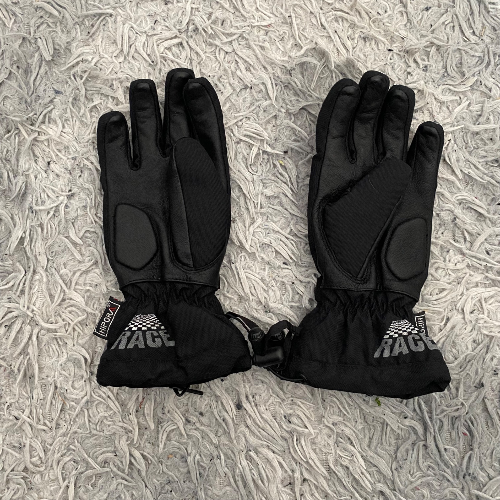 Megkímélt állapotú, textil-bőr kombinációjú gyerek motoros kesztyű S-es méretben. Középső ujj hossza 6 cm.