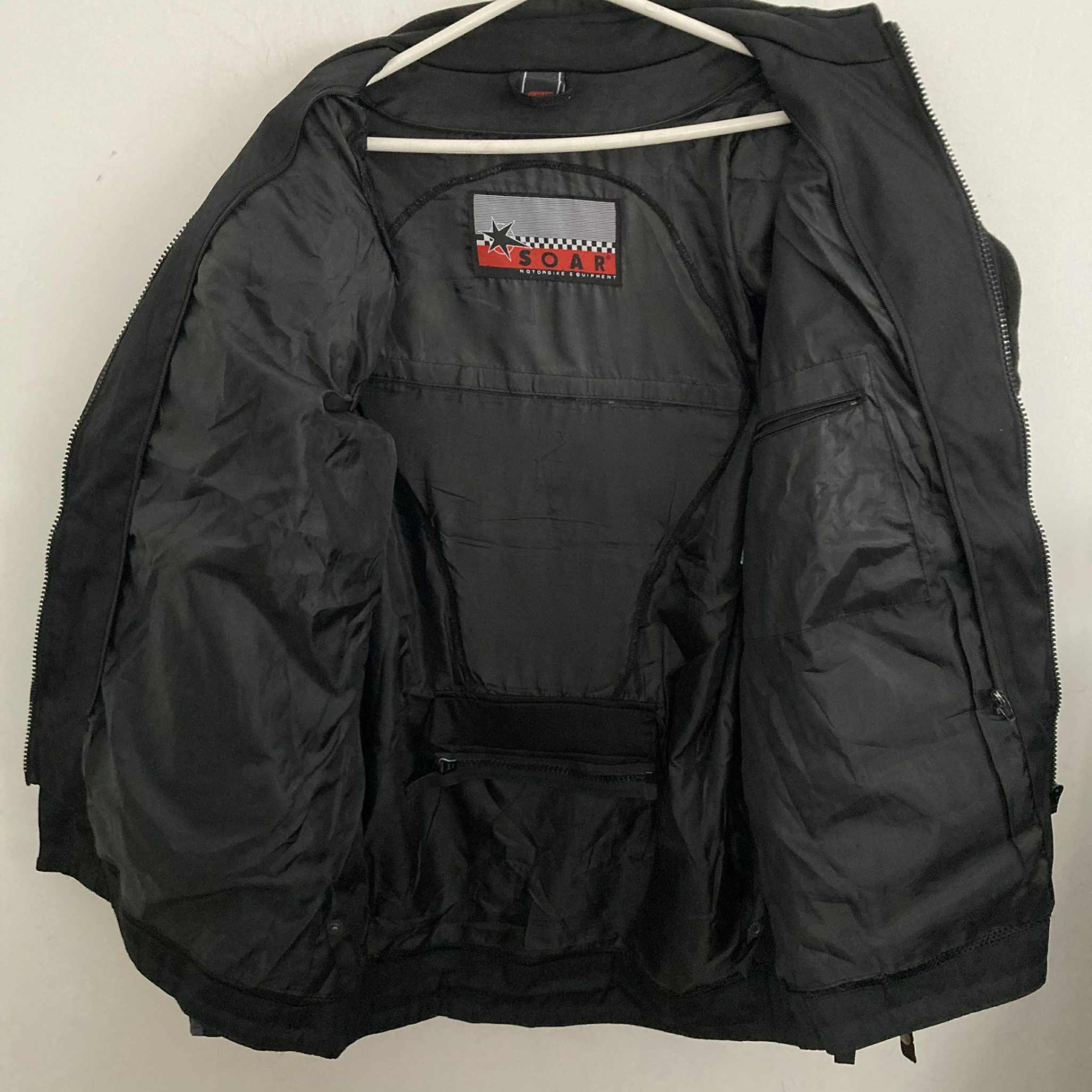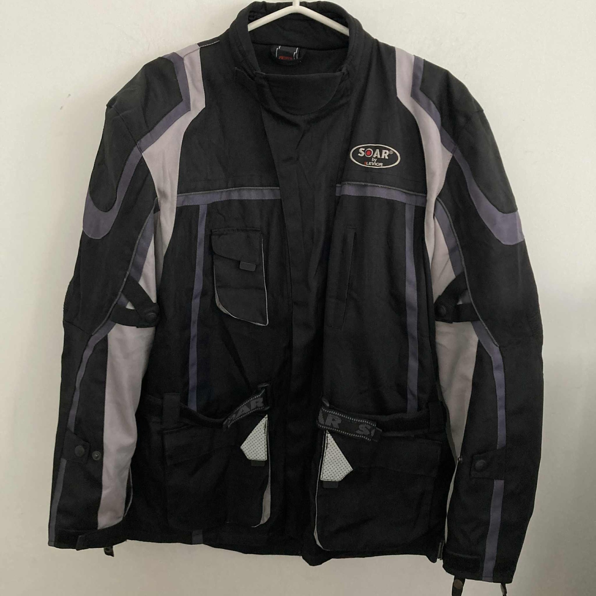 Jó állapotú könyök és váll protektoros, szellőzőkkel ellátott motoros kabát.