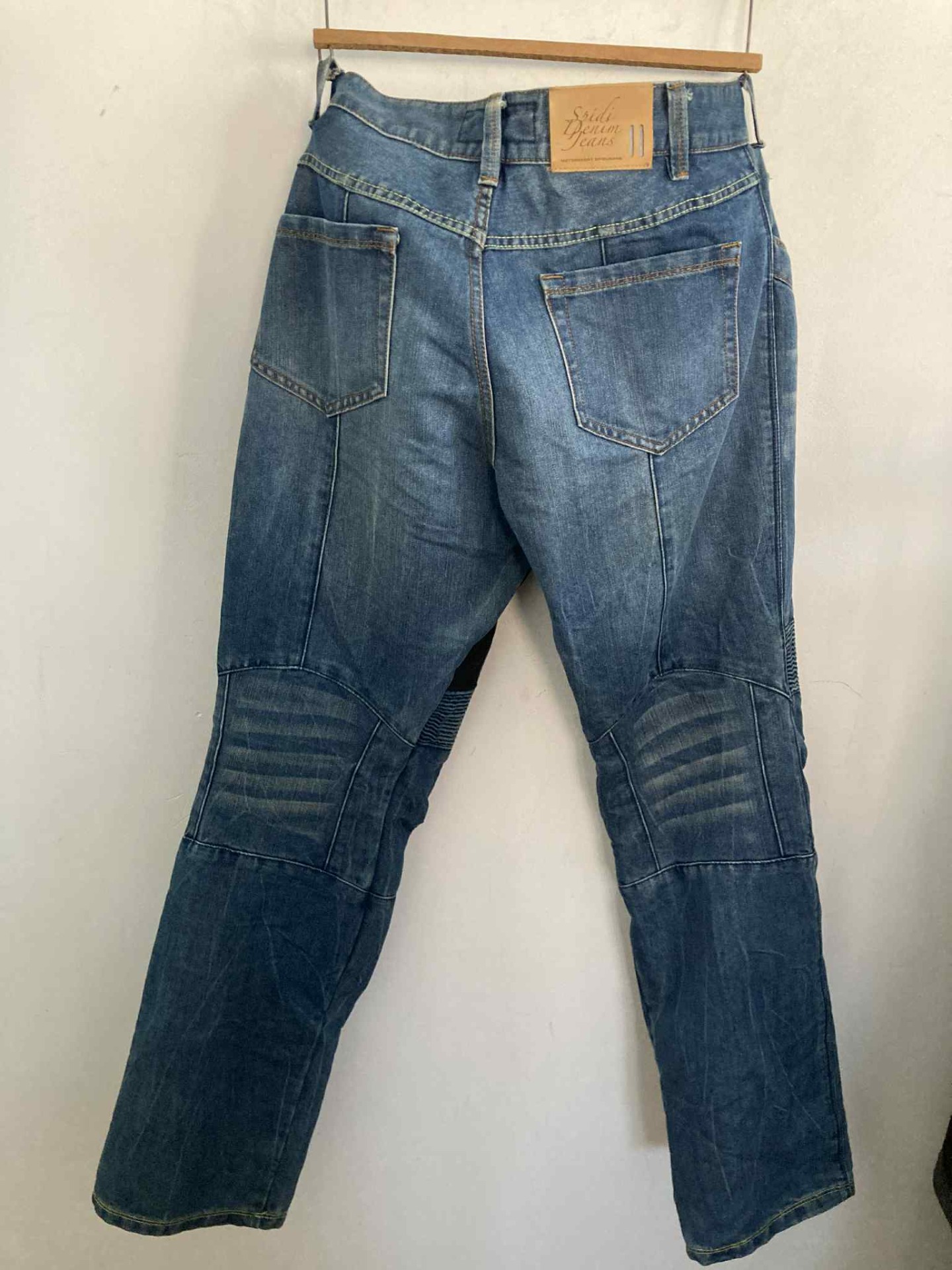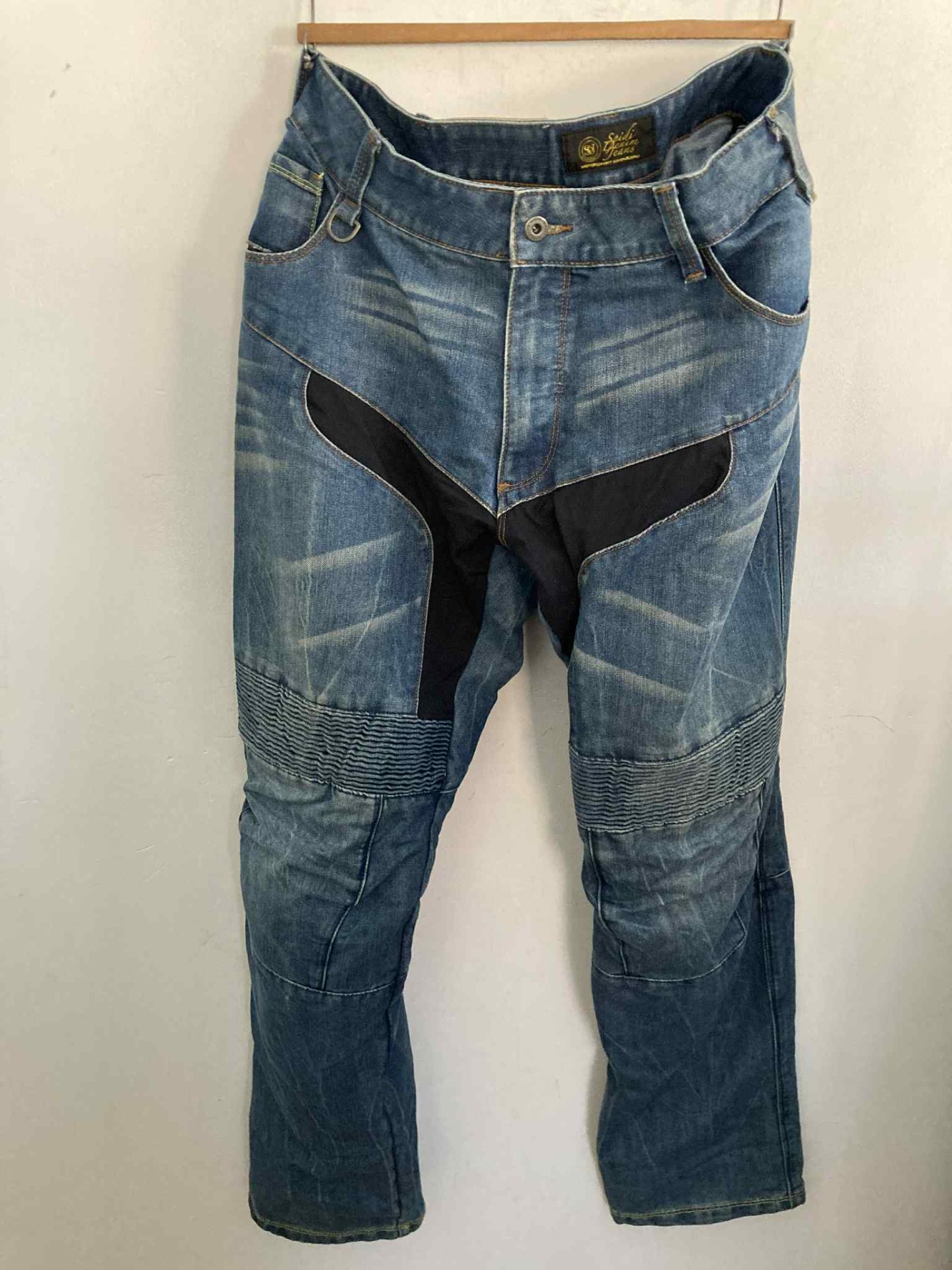 Megkímélt állapotú, csípő és térd protektorokkal rendelkező motoros farmer.