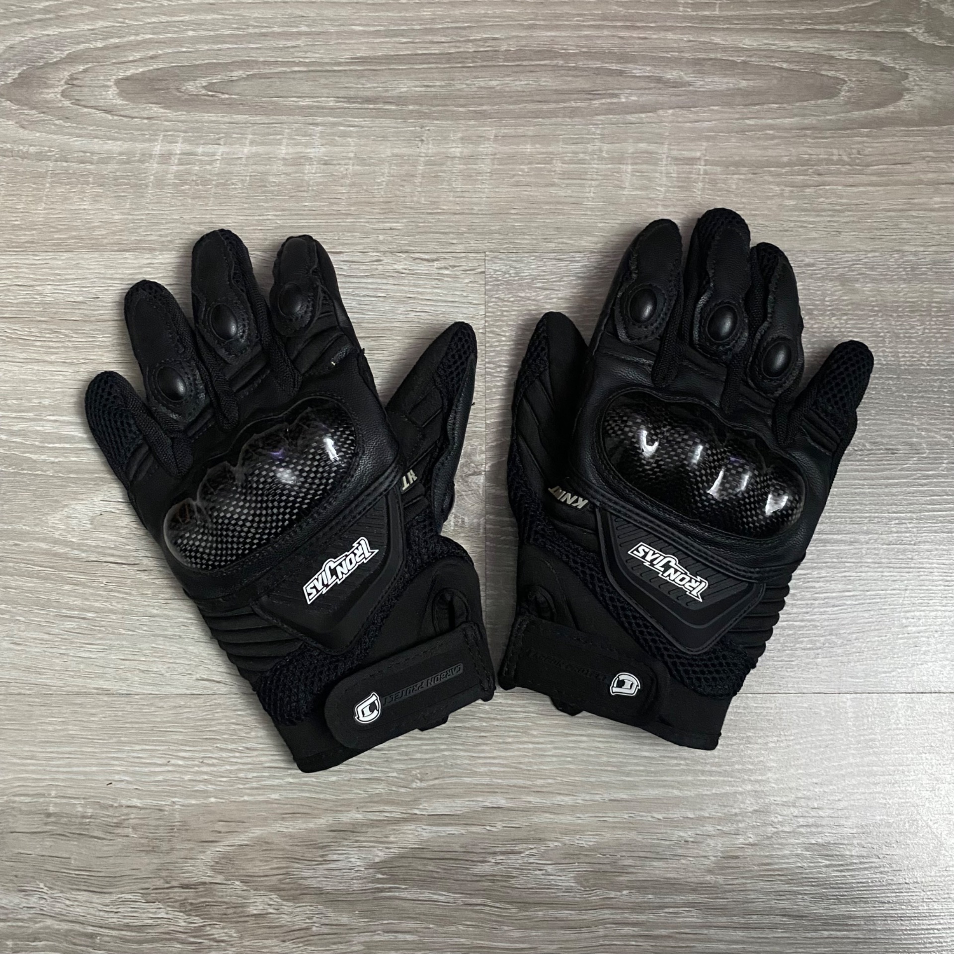 Megkímélt, újszerű állapotú, protektoros motoros kesztyű L-es méretben. Középső ujj hossza 9 cm, tenyér szélessége 11,5 cm.